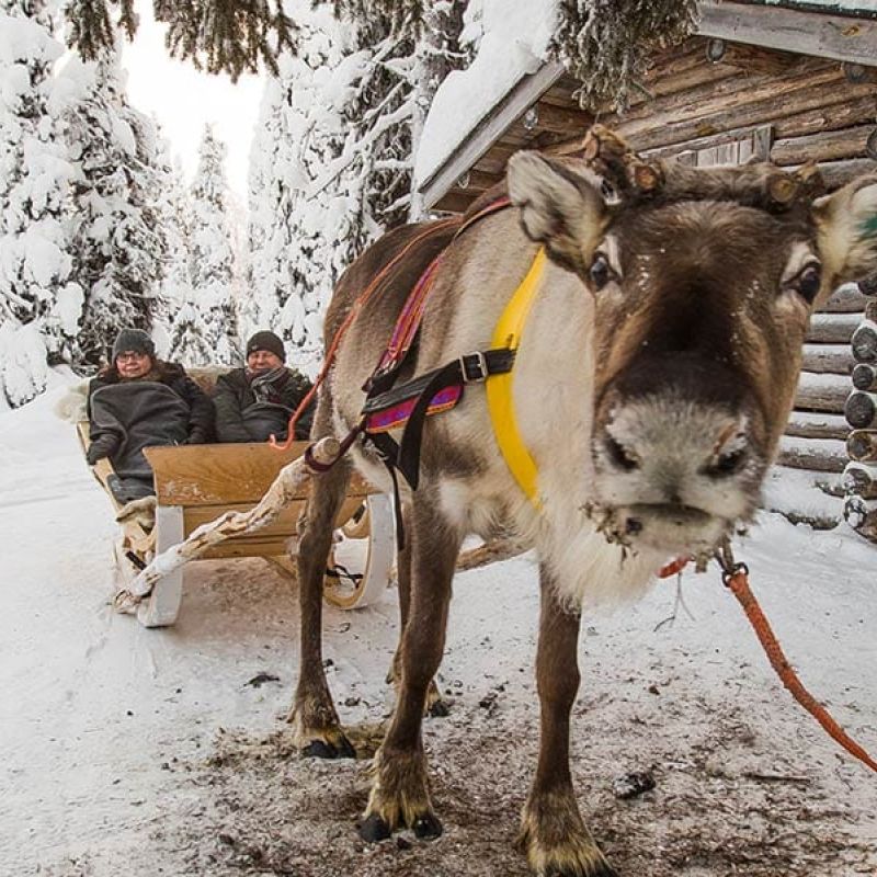 In the reindeer paddock in our yard, you can get to know our reindeer, feed them, and go for a reindeer ride in a spruce forest.